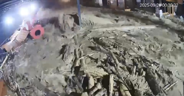 Yoldan dereye sürüklenen tonlarca ağırlıktaki 2 iş makinesi ve bir kamyon suların çekilmesi ile birlikte deredeki dev kayaların arasında görüldü. İş makinelerinin birinin devrildiği diğerinin ise yan yattığı gözlendi.